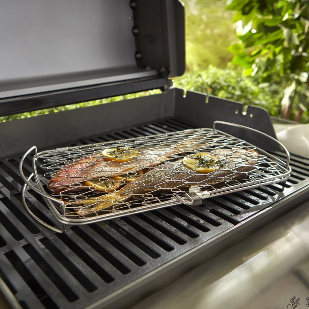Ez a grillező kosár ideális egész halak vagy filék sütéséhez. Fordítsa meg a kosarat anélkül, hogy a halak szétesnének vagy odatapadnának a grillhez.