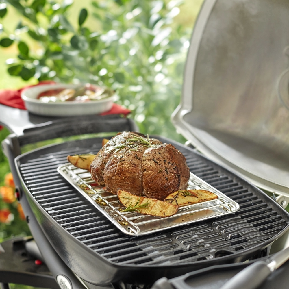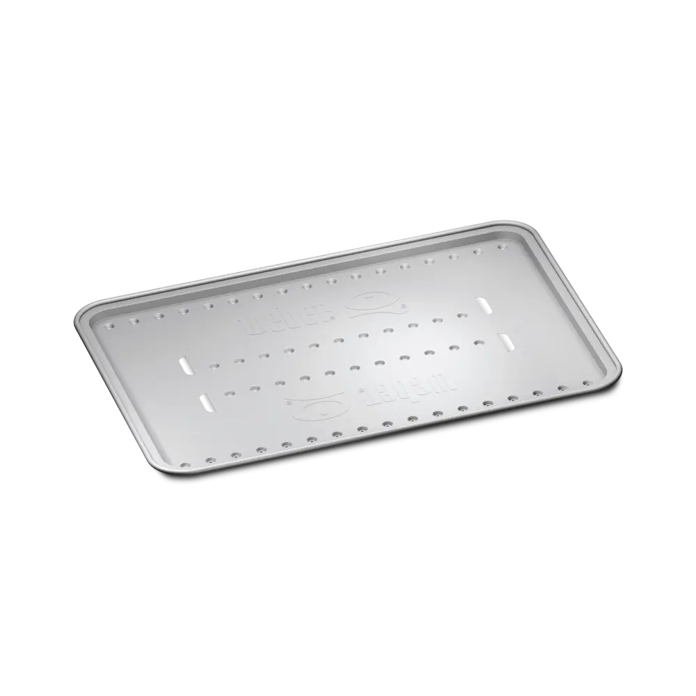 Ideális kiegészítő sütéshez ─ egyszerűen helyezze a hővédő lapot a külön kapható sütő rács alá, ahol a speciális kivágások lehetővé teszik, hogy a zsír lefelé, a csepegtető tálcába folyjon, nem pedig az égők irányába. A megfelelő közvetett hő biztosítása érdekében helyezze a húst a sütő rácsra, alatta egy hővédő lappal.