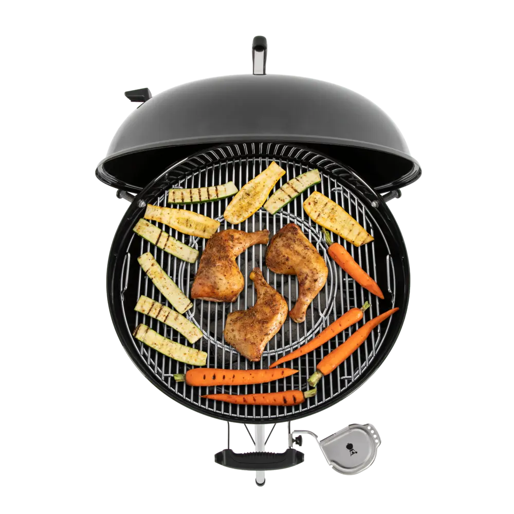 A luxus és a kreativitás kéz a kézben jár ebben a legendás, stílusos 57 cm-es faszenes gömbgrillben. Zárt hamugyűjtő, fedéltartó, egy GBS sütőrács minden kulináris kísérlethez, és egy iGrill kiegészítőtartóval továbbfejlesztve – ez a garancia a faszénen való grillezés autentikus érzésére.